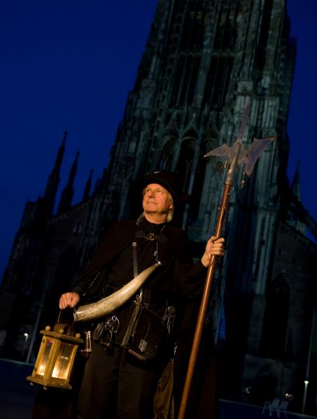 So zogen vor Jahrhunderten Nachtwächter durch viele Städte. In Ulm können Sie bei einer Nachtführung dabei sein und den Anekdoten der Nachtwächter Karl-Heinrich und Jörg lauschen.