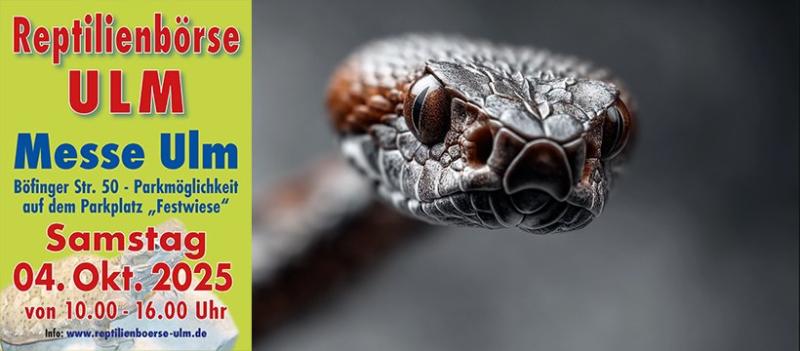 Unsere Terraristikbörsen sind ein „Eldorado" für Reptilienfreunde aus Nah und Fern. Es erwartet Sie ein umfassendes Angebot an: Reptilien, Amphibien und Kleinsäuger wie z. B. Schlangen, Echsen, Vogelspinnen, Pfeilgiftfrösche, Schildkröten, Bartagamen, Gottesanbeterinnen, Geckos, Farbratten, Futtertiere wie Heuschrecken, Heimchen, Futtermäuse, Fachliteratur und alles was zu einer artgerechten Haltung dazugehört wie Terrarien, UV-Lampen, Terrariensand, Wärmematten, Beregnungsanlagen und Pflanzen
